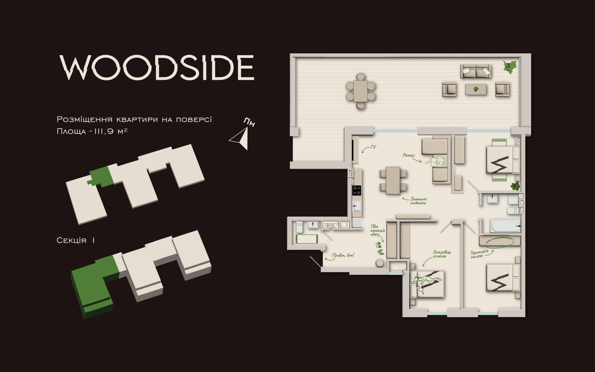 Комфортна квартира з великою кухнею-вітальнею, трьома кімнатами та сучасним санвузлом. Найприємніше — власна тераса. Тут легко облаштувати лаунж-зону, літній обідній куточок або зелену оазу з квітами й улюбленими рослинами. Із вікон та тераси видно приватний сектор — тиша й затишок гарантовані.
