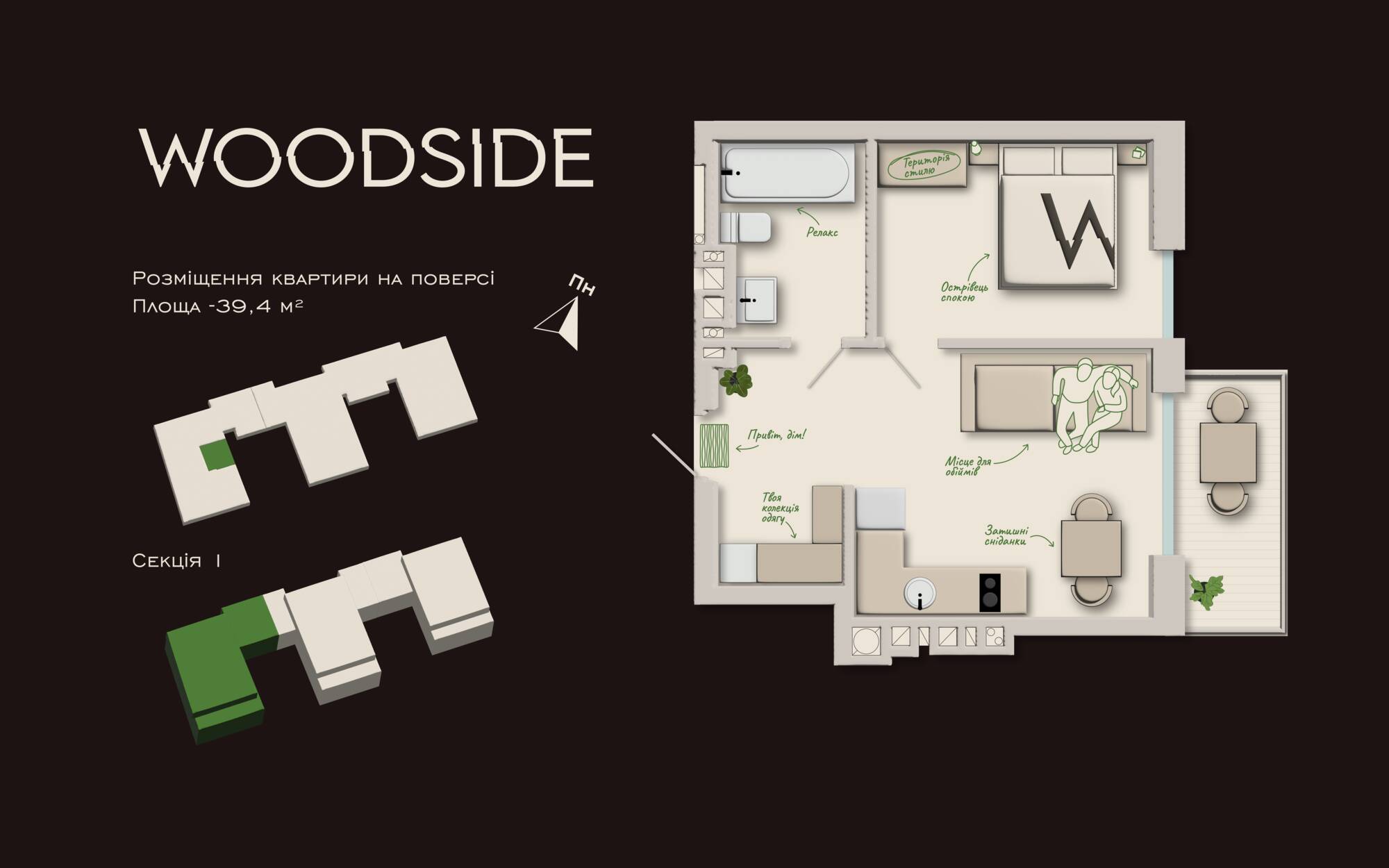 Затишна квартира з компактною кухнею-вітальнею, світлою спальнею та зручним санвузлом. Її головна перевага — тераса з виходом у двір, де можна облаштувати свій куточок відпочинку чи навіть невеликий сад. Вікна теж виходять у тихий двір, тож вдома завжди буде спокій.