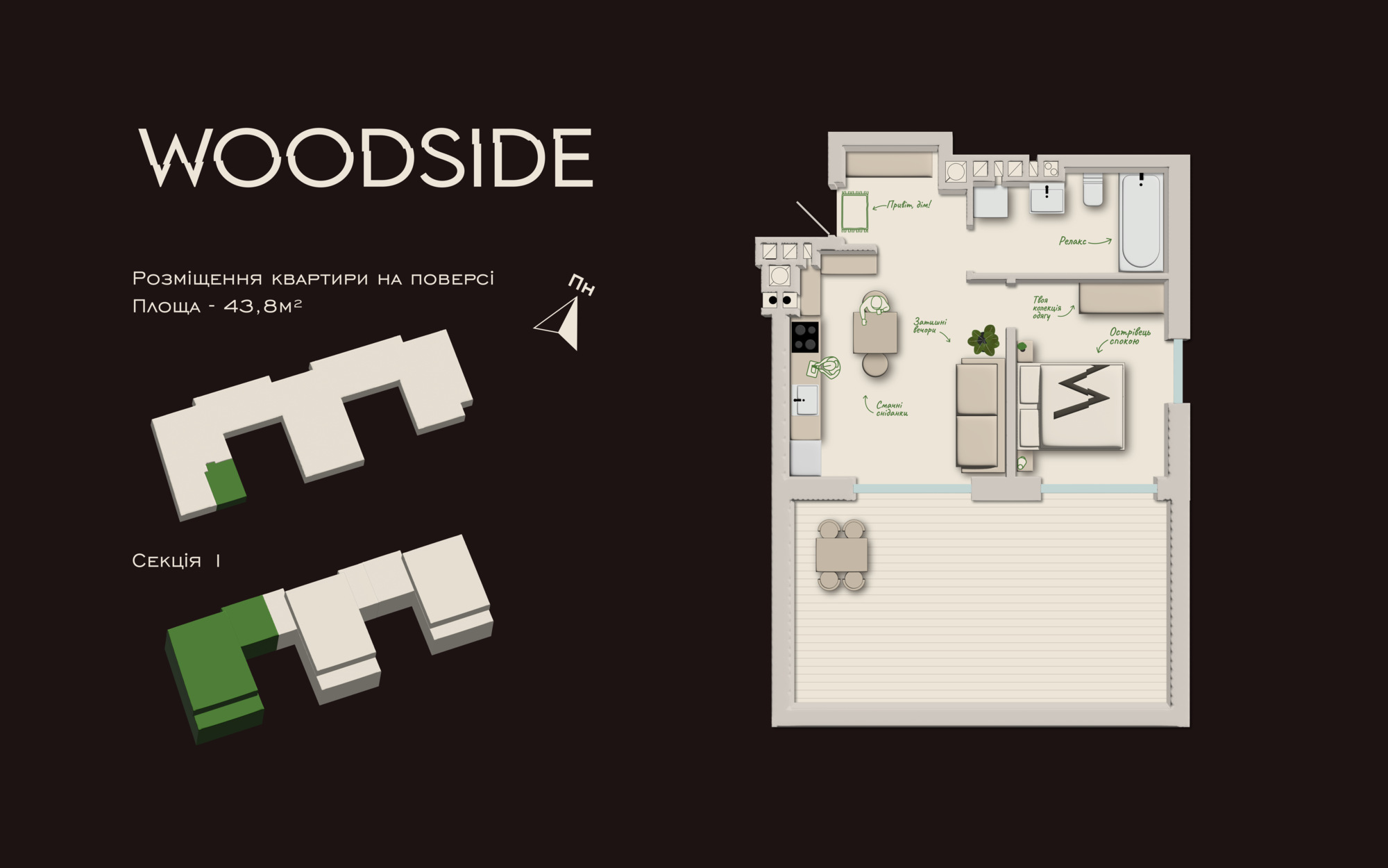 Затишна квартира з функціональним плануванням: простора кухня-вітальня, окрема кімната та комфортний санвузол. Власна тераса разом із вікнами виходить у тихий двір та на приватний сектор, даруючи спокій і приємний краєвид. Простір тераси чудово підійде для відпочинку, ранкової кави або невеликого зеленого куточка просто біля оселі.