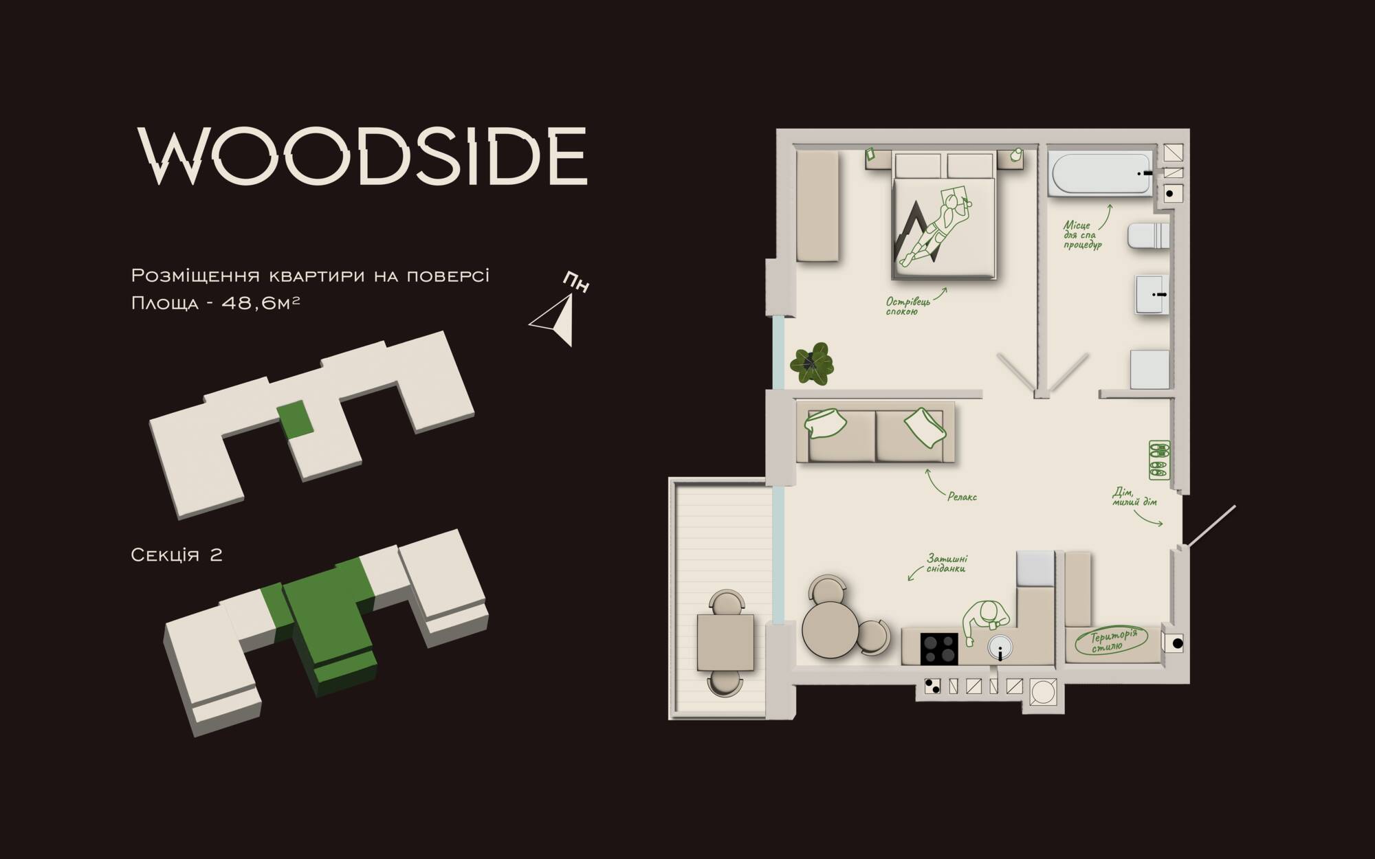 - Загальна – 48,6 м²