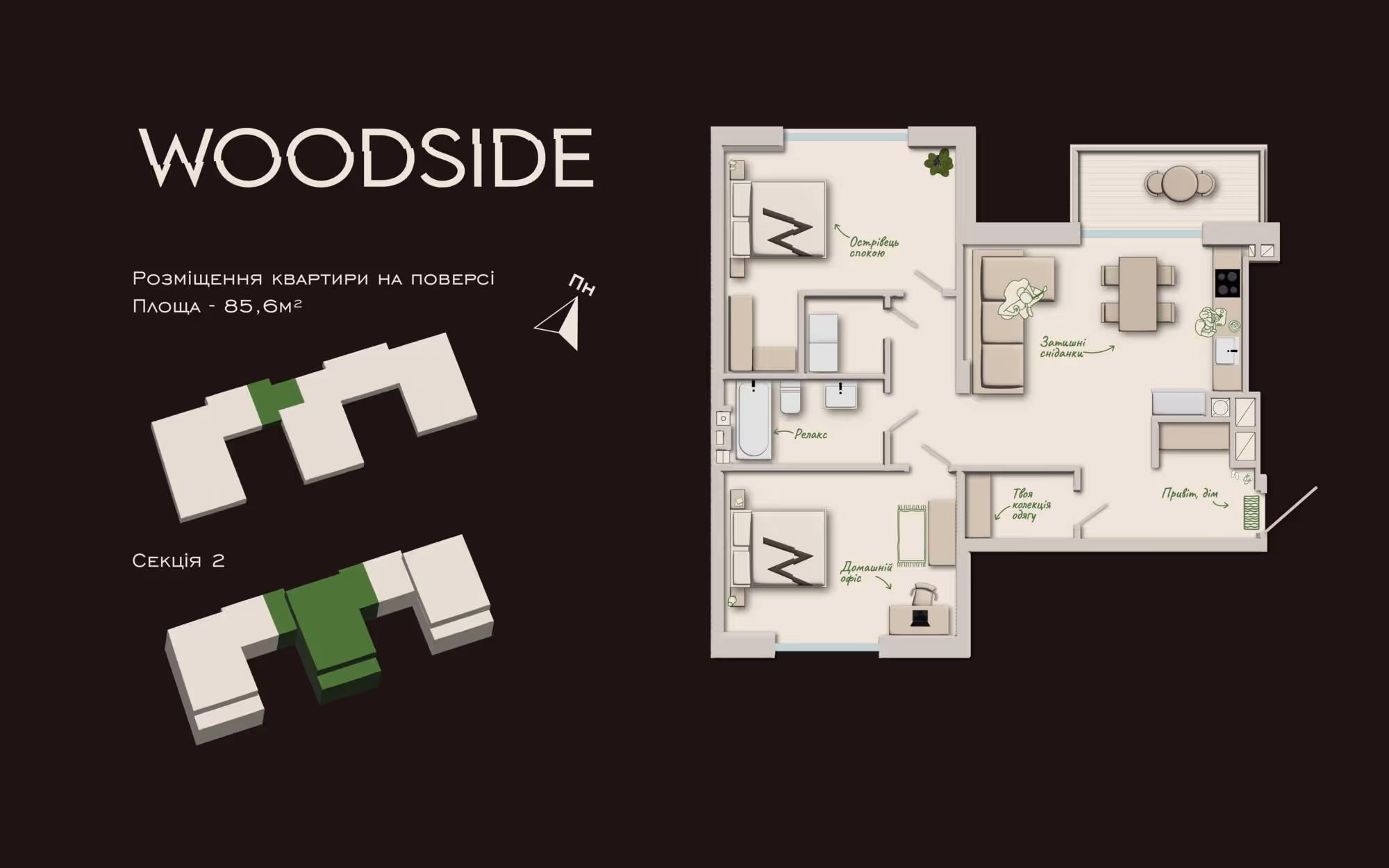 Світла й комфортна квартира з великою кухнею-вітальнею, двома кімнатами, зручним санвузлом та достатньою кількістю місця для зберігання завдяки двом гардеробам і коморі. З вікон відкривається приємний огляд на приватний сектор.