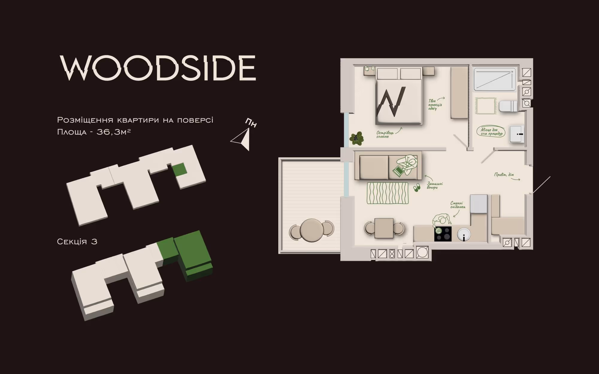 Сучасна квартира з оптимально організованим простором. Кухня площею 15 м² настільки зручна, що тут легко поміститься і диван, і обідній стіл. А тераса, що виходить у затишний двір, стане улюбленим місцем для ранкової кави та вечірніх зустрічей із друзями чи рідними.