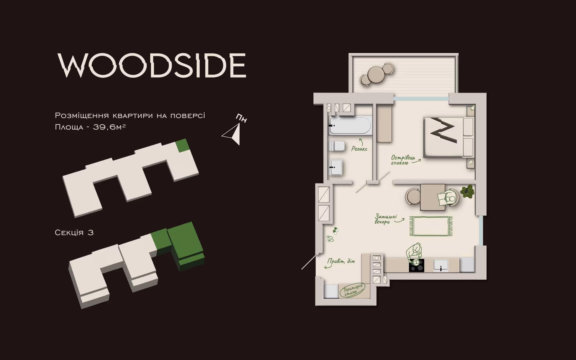 Простора й світла квартира з однією спальнею, кухнею-вітальнею та балконом, де легко облаштувати затишну лаунж-зону. Гарний варіант і для власного проживання, і як інвестиція під оренду.
